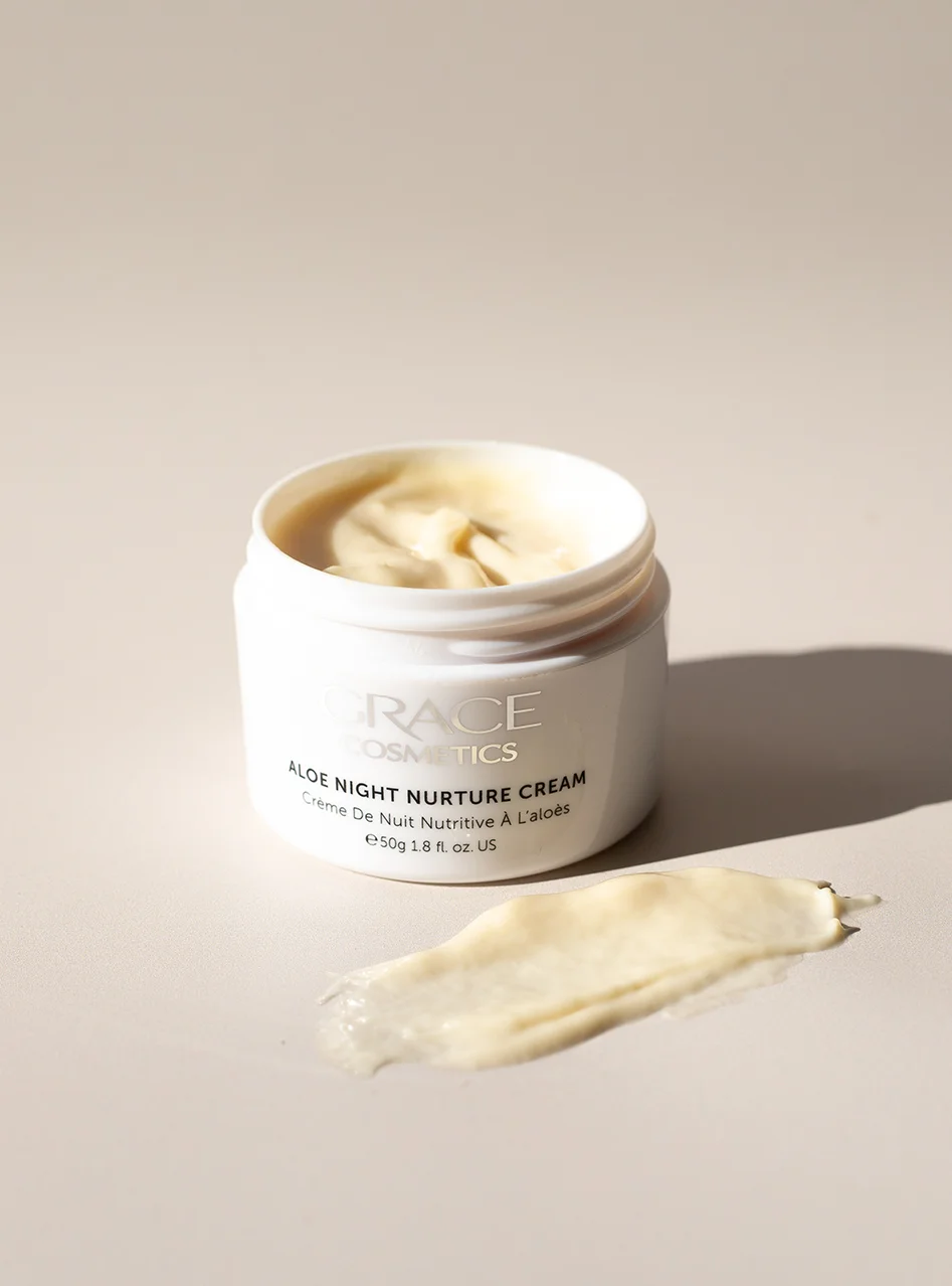 If your skin immediately drinks in your Grace moisturiser after applying and still seems thirsty for more moisture, it’s time to level up. Our Aloe Night Nurture Cream is formulated for dry and mature skin, making it the perfect defence against dry winter skin. With a rich blend of certified organic aloe vera and botanical oils, it deeply restores hydration while you sleep.